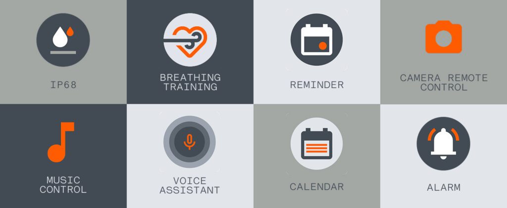 | Salud | Frecuencia cardíaca Oxígeno en sangre(SpO2) Nivel de estrés Monitor de sueño Seguimiento menstrual |